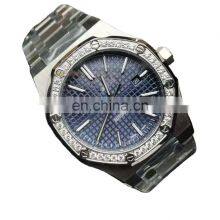 Custom Logo Luxury Diamond Gold Stainless Steel Case Waterproof Watch Clear Case Back Japanese Automatic Mechanical Watch