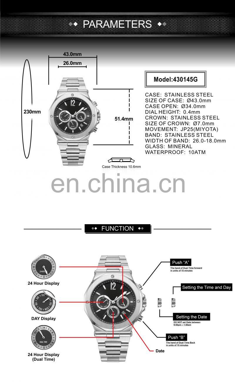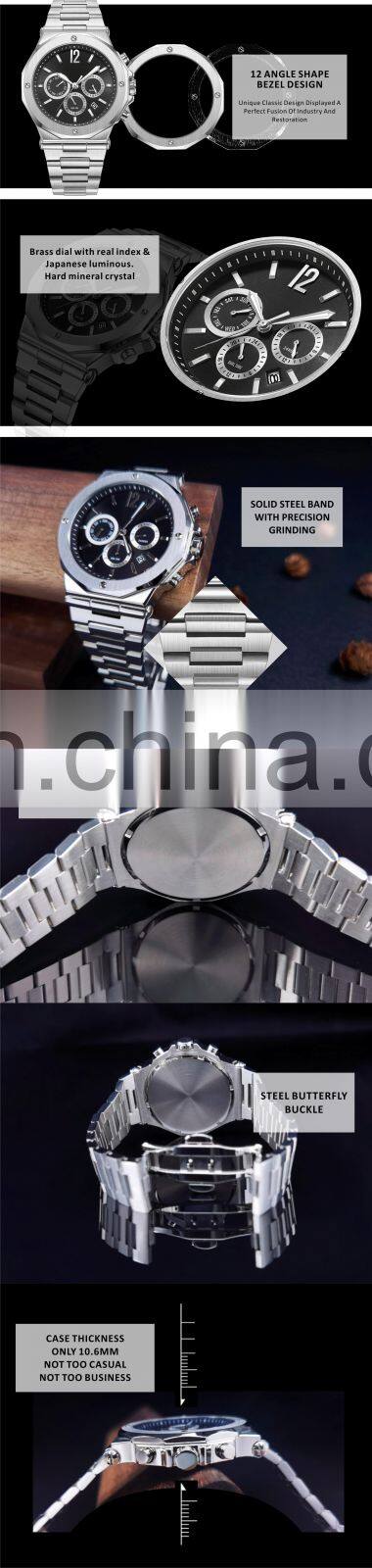 - Stainless Steel Water Resistance Multi-function Watches Man Chronograph Watch