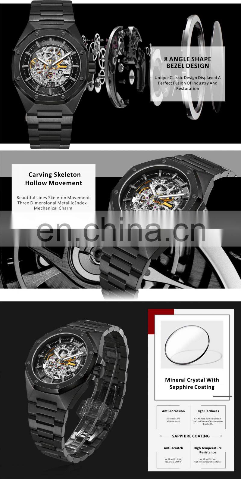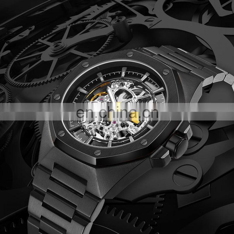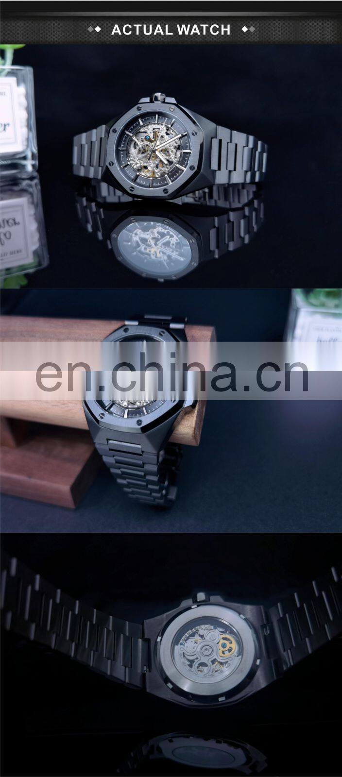 OEM Brand Wrist Watch Custom Logo Mechanical Skeleton Black Dial Watches Water Prooft Stainless Steel Luxury Men Automatic Watch