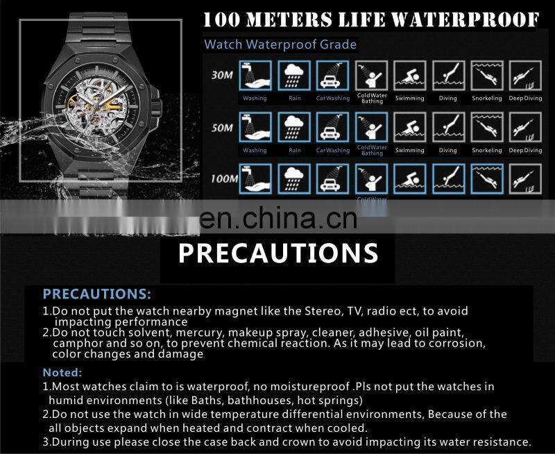 Luxury Reloj Hombre 10ATM Waterproof automatic watches Stainless Steel Band Business Men Mechanical Skeleton Watch