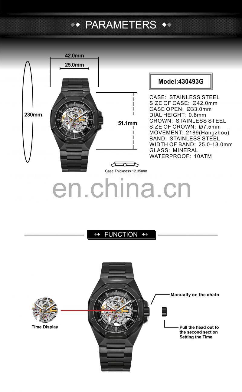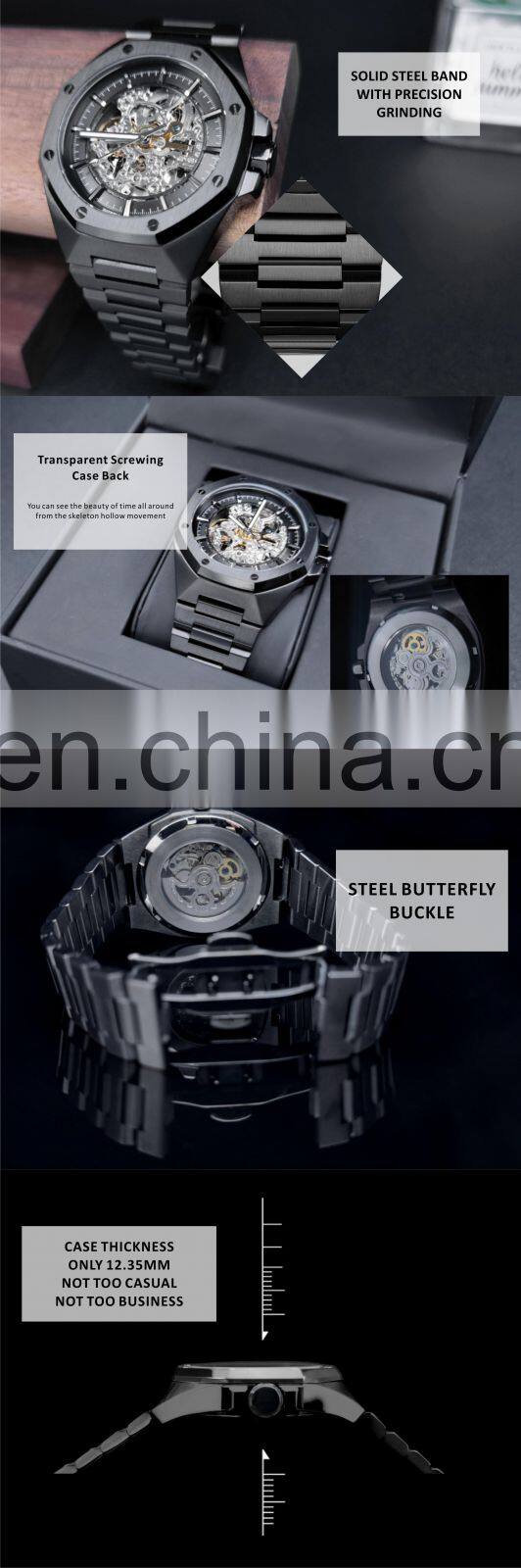 2019 New Automatic Skeleton High Quality Wrist Mechanical Movement OEM or ODM for Business Luxury Men Watches