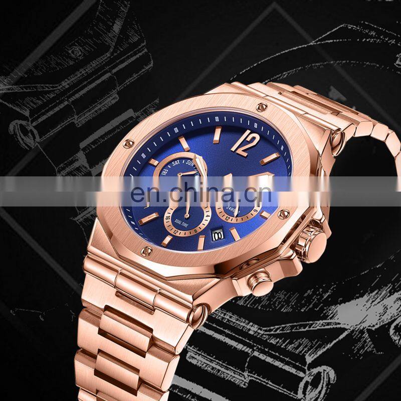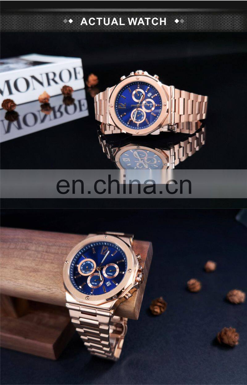 Top Brand Sports Watches Blue Dial Stainless Steel Rose Gold Bracelet Stylish Luxury Watches Men Wrist