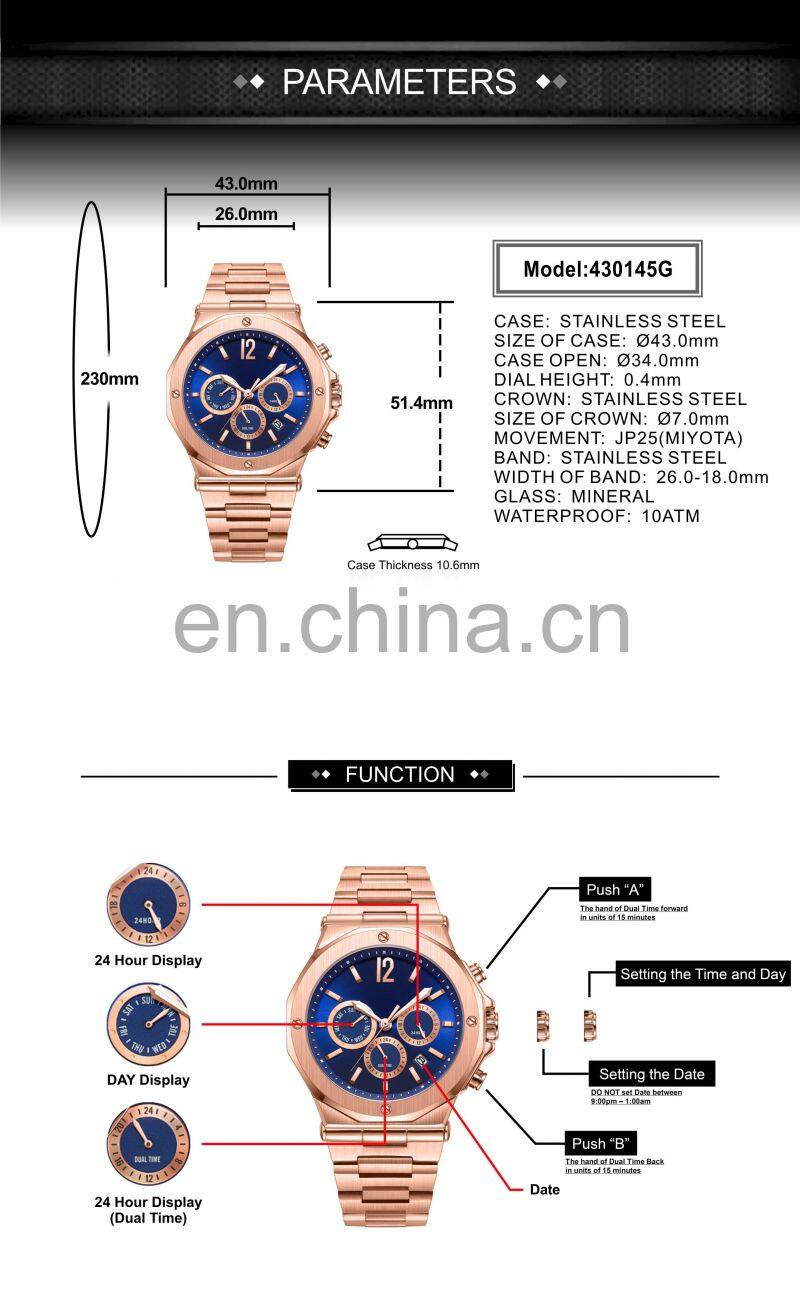 Wholesale Relogio Masculino Japan Movt Quartz Stainless Steel Luxury Watch High Quality Rose Gold Man Watch Luxury