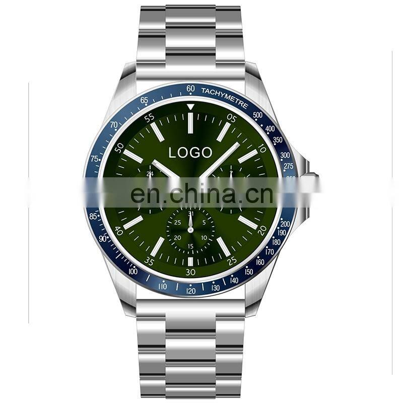 Best Selling Brand Your Custom Logo Oem and Odm All Stainless Steel Waterproof 3 Eyes Minimal Watch Men