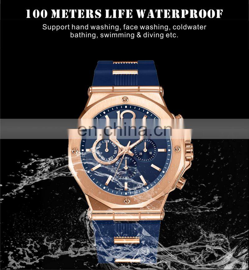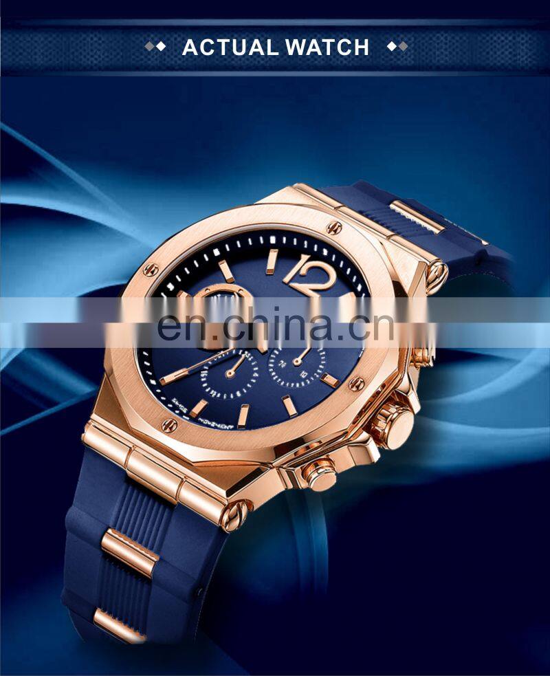 Top Brand Sport Watches Wrist OEM ODM Classic Waterproof Silicone Strap Rose Gold Reloj Watches For Men Luxury Quartz Watches