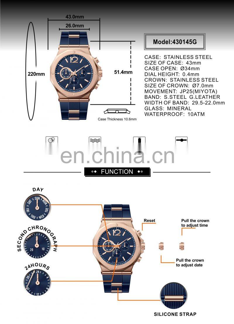 Custom Logo10atm Waterproof Mens Branded WatchesOEM ODM Blue Chronograph Mens Style Quartz Watches Stainless Steel Watch Case