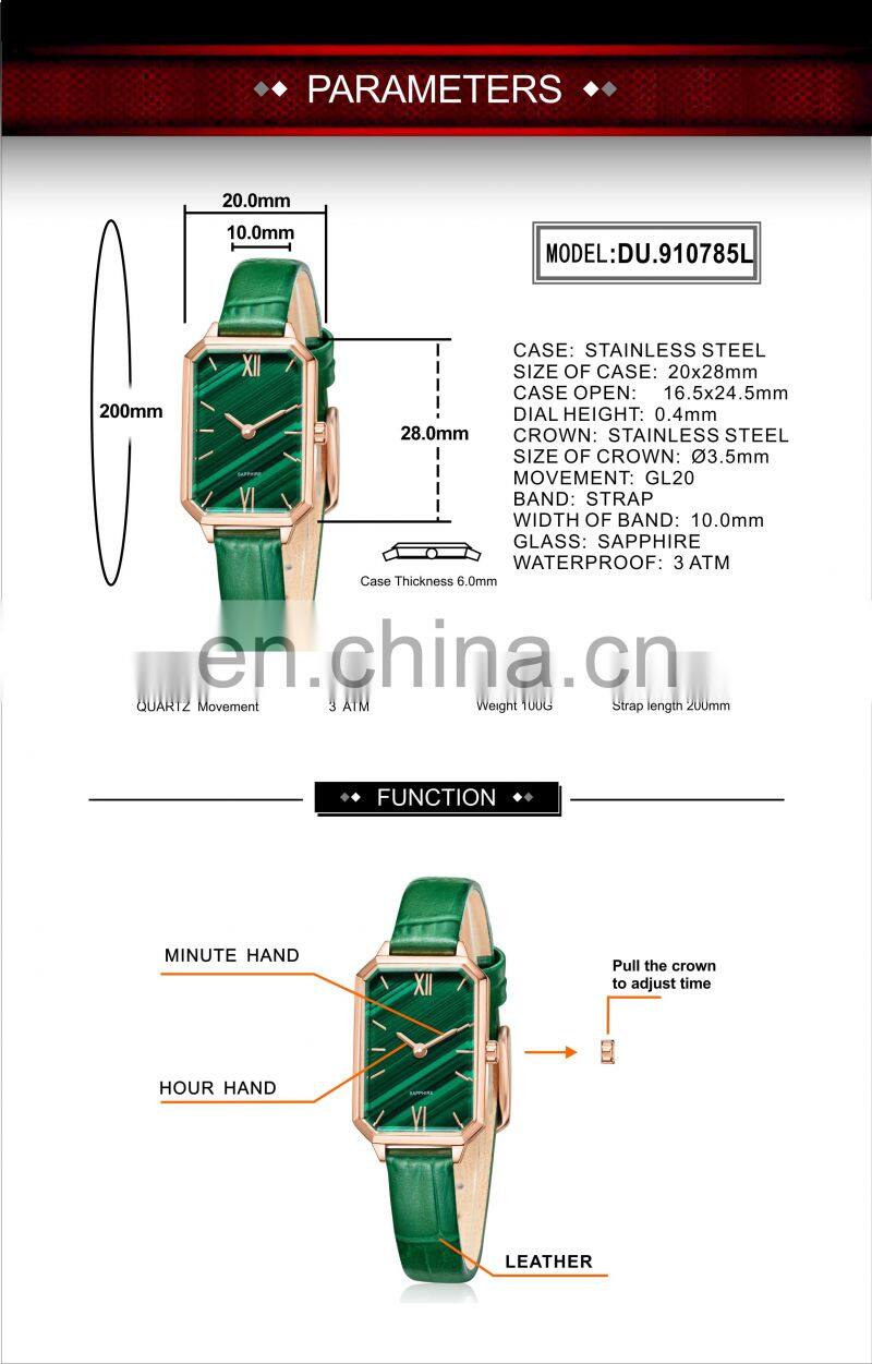 Customized Ladies Watch Hot Selling Small Green Dial Square Quartz Watches Waterproof Wrist Watch Women Luxury Brand