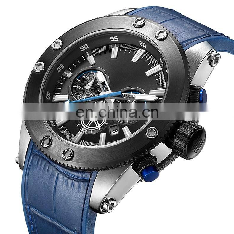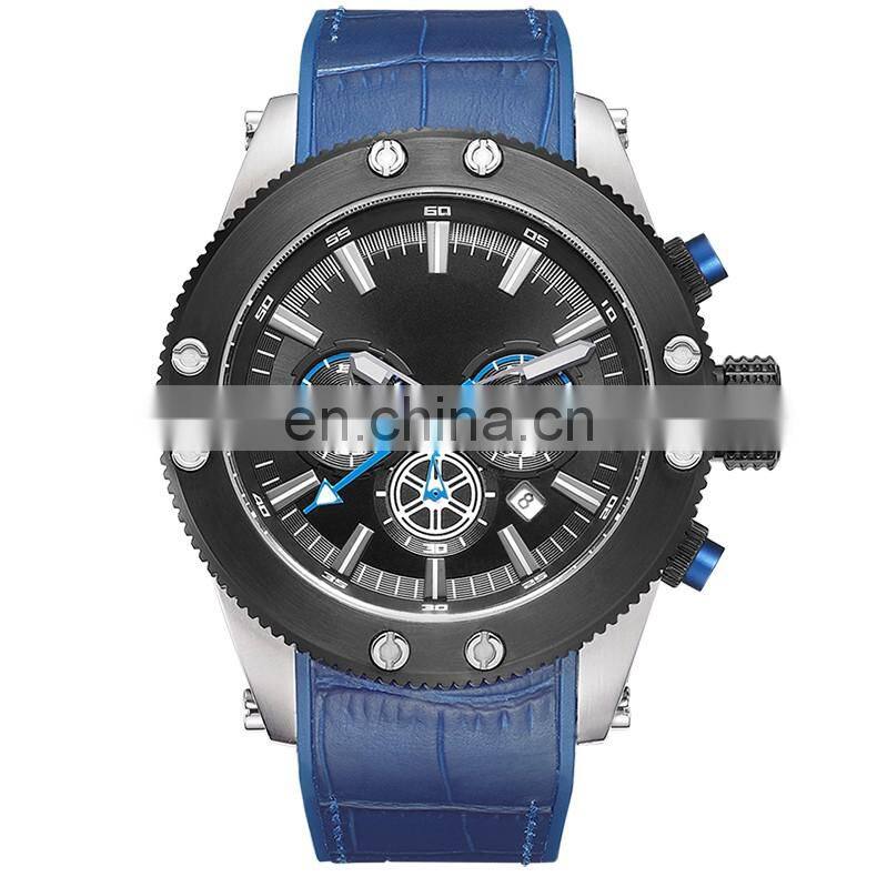 Fashion Watches 2022 Casual Quartz Watch Men Large Dial Waterproof Multifunction Chronograph Luxury Watch Custom Logo Leather Wa