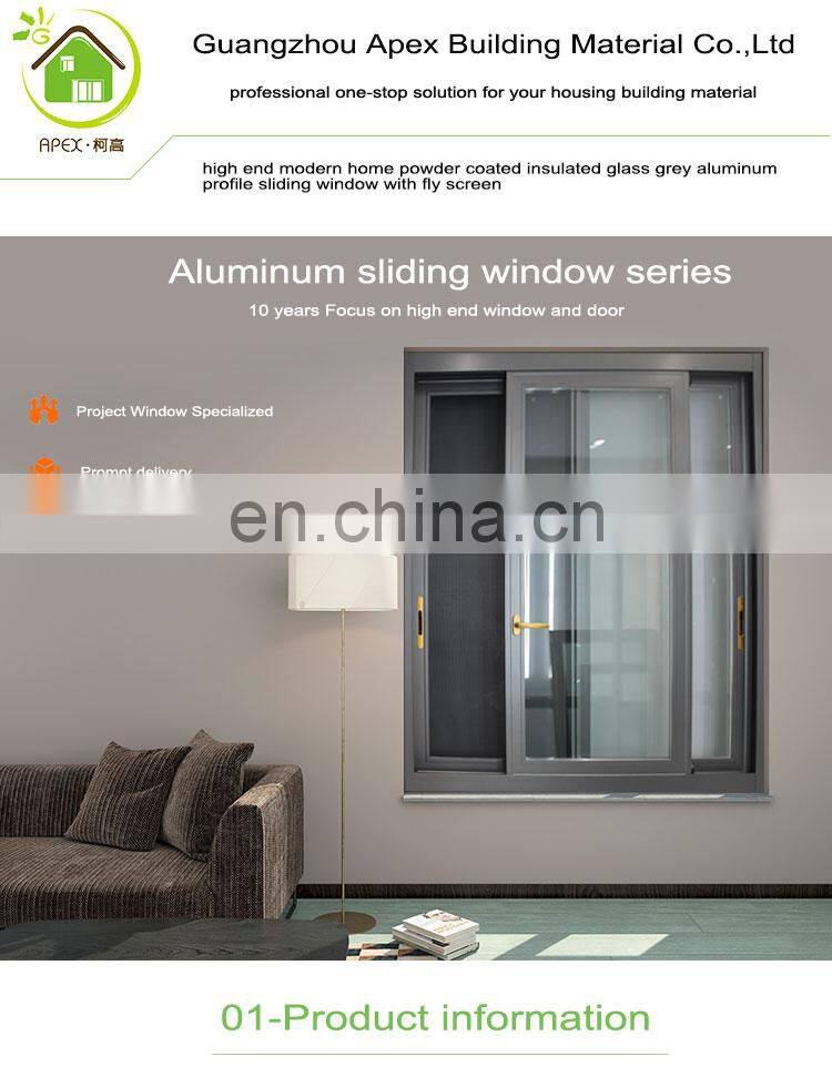 Home > Products > Aluminum doors and windows > High End Modern Home Powder Coated Insulated Glass Grey Aluminum Profile Sliding Window With Fly Screen