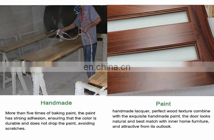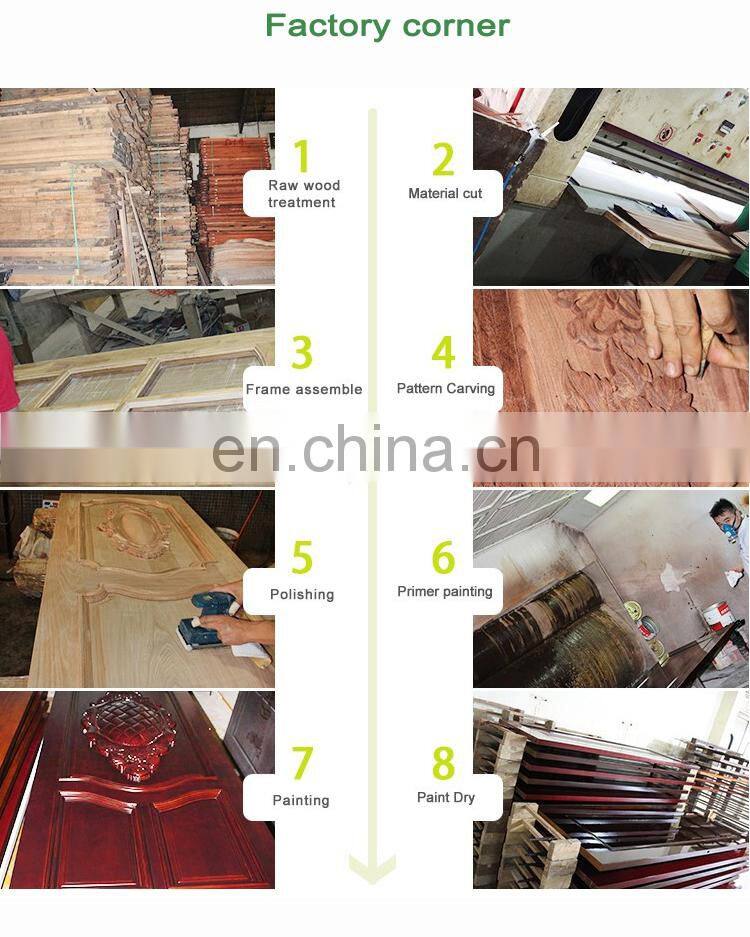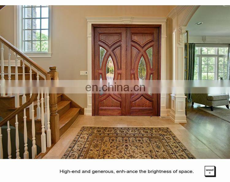Our wood door features | 10 years at least wood door production experience; 100% handmaking craft; Deep carved design; Wood pre-treated; Mositure proof &Waterproof; non-cracking & weather resistance; Solidity & Security |