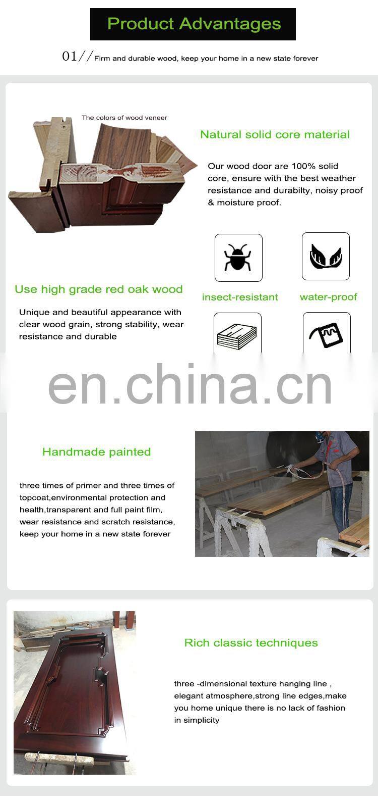 Our wood door features | 10 years at least wood door production experience; 100% handmaking craft; Deep carved design; Wood pre-treated; Mositure proof & Waterproof; non-cracking & weather resistance; Solidity & Security |