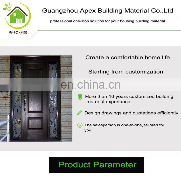 Black Walnut Main Door With Double Sidelights Design /Doors Front Entry Glass With Wrought Iron Insert