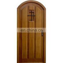 Antique Flat Solid Wood Arch Main Doors Design With 2 Sidelights