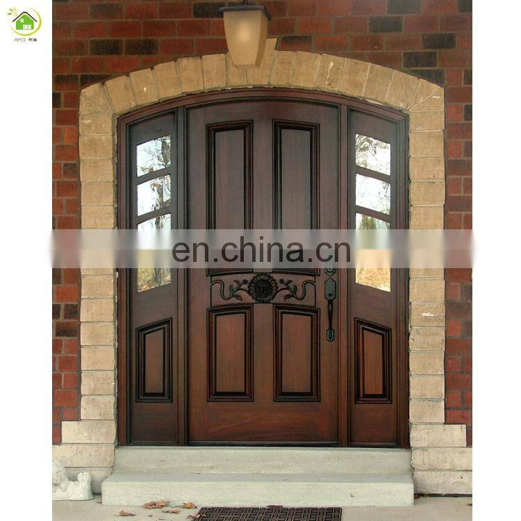 Advantage of 36 inch teak wood double front mother and son door design with 2 sidelights