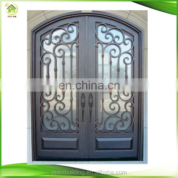 Custom Arched Luxury Wrought Iron Fancy Decorative Front Double Entry Doors