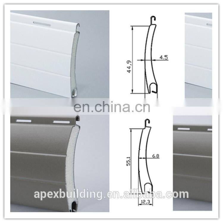 Aluminum profiles shutter doors is specially designed high-strength wind-resistant door against wind of typhoons in coastal areas, sand inland area , wind-resistant door plate use high strength color-coated steel door galvanized steel cold-rolled, it is anti-typhoon, tamper , rain, moisture, cold, sun, sand, every noise and other functions, is applicable to any field of architecture.