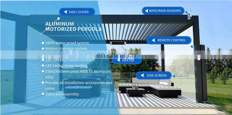 Outdoor Patio Cover Motorized Waterproof Louver Roof Aluminium Pergola Pavillon
