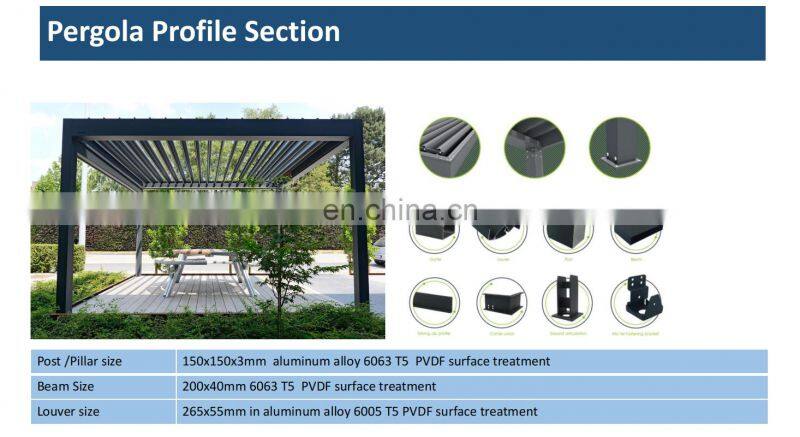 - Auto Outdoor Garden Pavilion Sun Shade Aluminum Bioclimatic Pergola Kits Roofing Systems