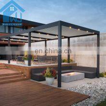 Motorized Powder Coated Metal Gazebo Aluminum Louvered Roof Pergola Kits With LED Lights