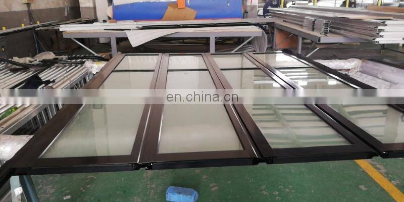 Horizontal Bi-fold Tempered Glass Garage Door Wooden Color Sectional Panels Aluminum Garage Door