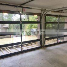 Modern Garage Door Design Electric Sectional Overhead Folding Aluminum Silver Frame Glass Panel Garage Door