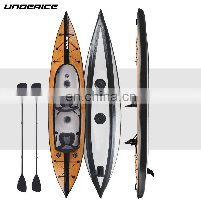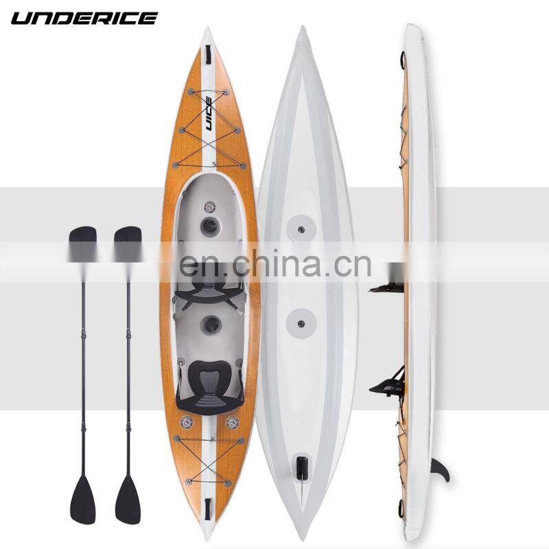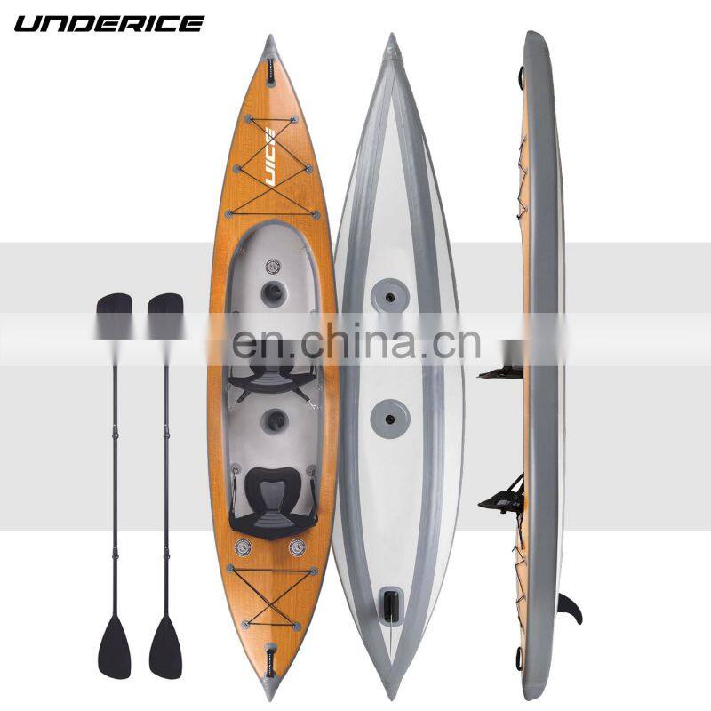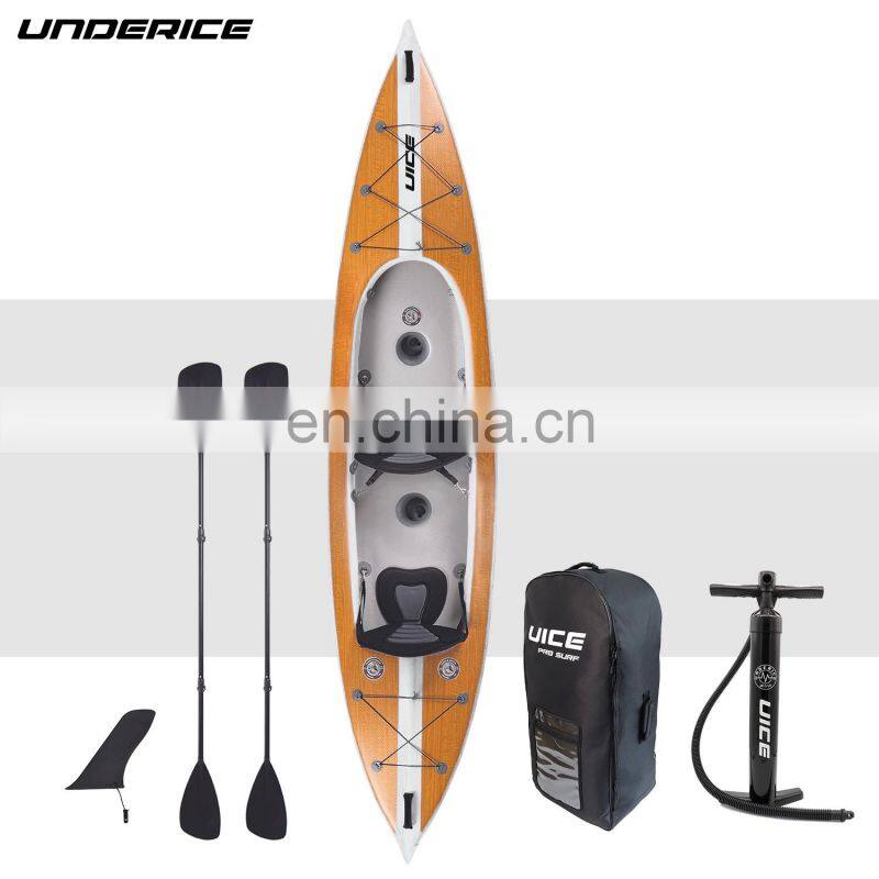 OEM ODM Drop Stitch Kayak 2 Person Wood Grain Kayak Two Valves Without Tube for Adult Unisex