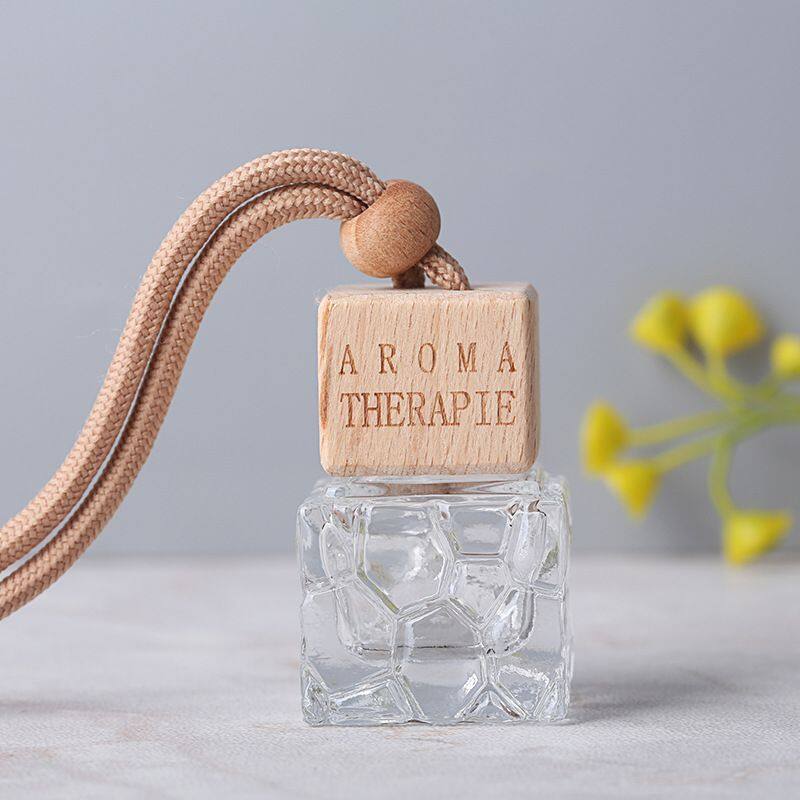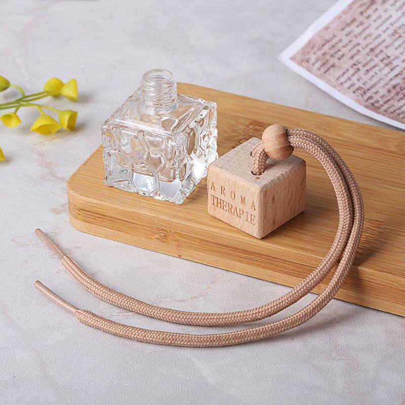 Wholesale 10ml Water Cube Shape Empty Refillable Glass Car Hanging Perfume Bottle
