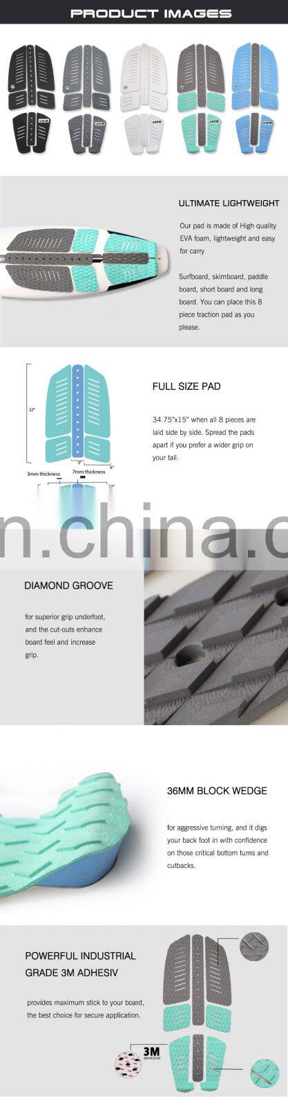 Home > Products > Surf Accessories > Wholesale Customized EVA Deck Pad 8-Piece Foam Surfboard Traction Pad Surfing SUP Pads With Kicker for Stomp