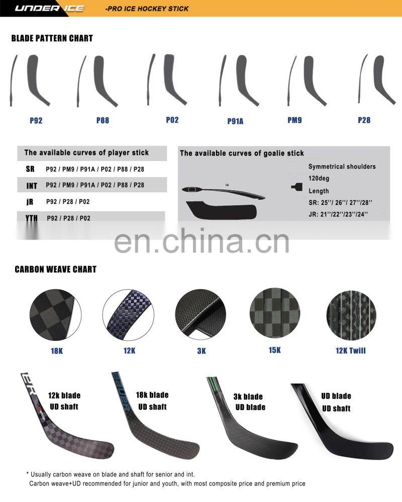 UICE 66 18K 375g P92 Left Senior Blank Durable Ice Hockey Stick With Unbranded Full Carbon