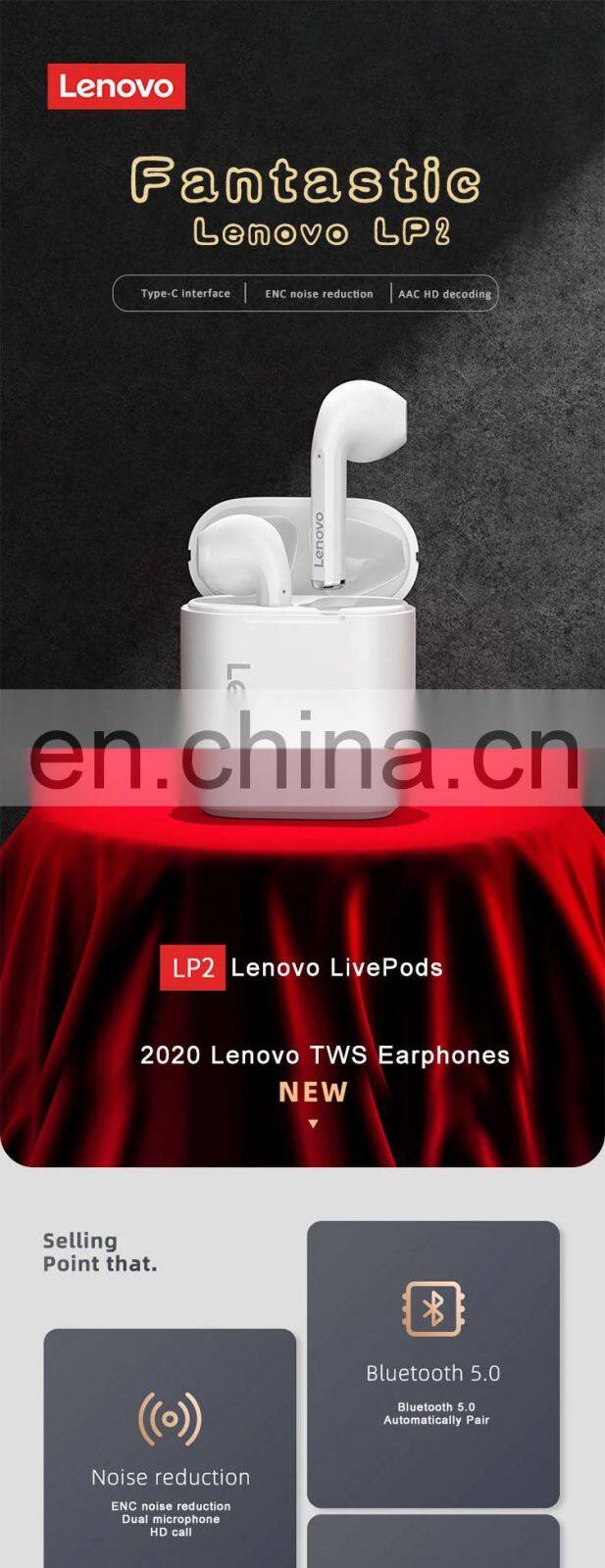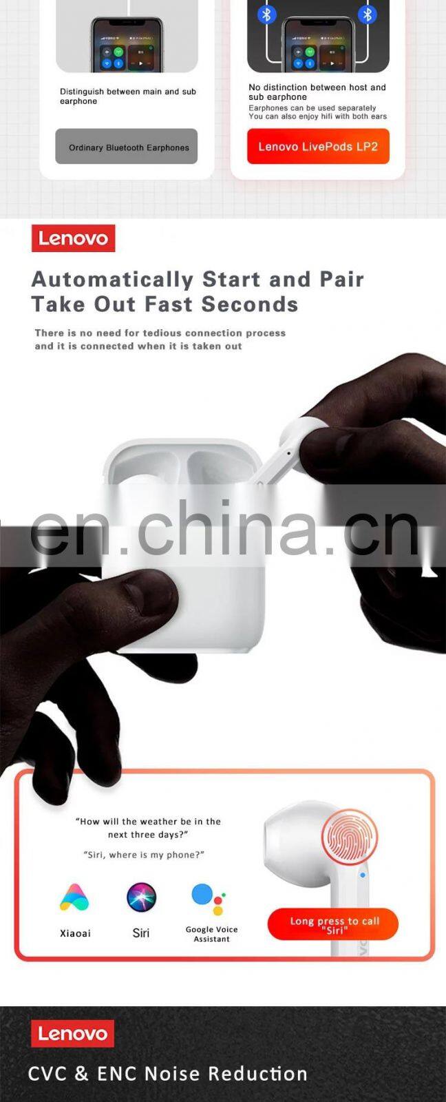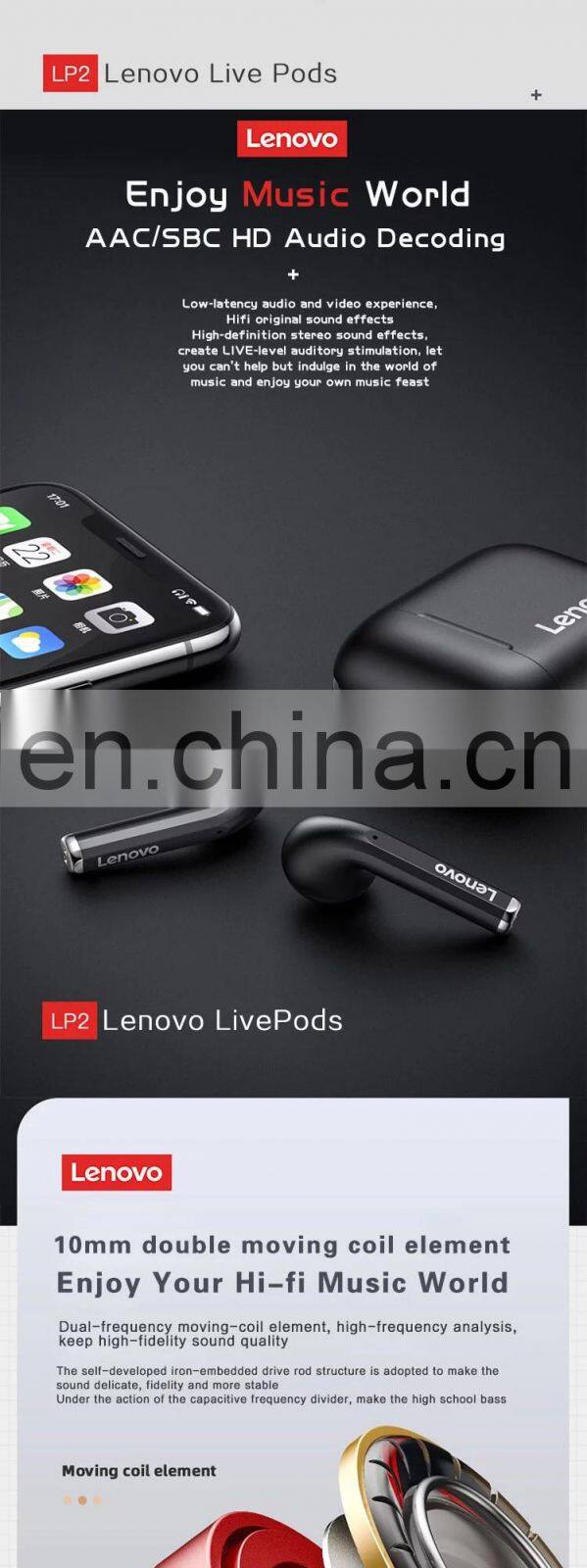 Original Brand New Lenovo LP2 TWS Wireless Headphones Dual Stereo Bass Touch LP1 Update IPX5 Life Waterproof Dual Microphone