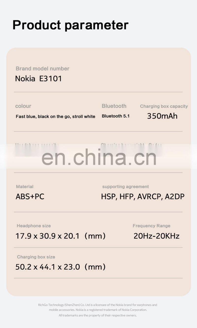 Nokia E3101 Wireless Headset Stereo Bass Wireless Headset Noise Cancelling Waterproof HD Call With Microphone