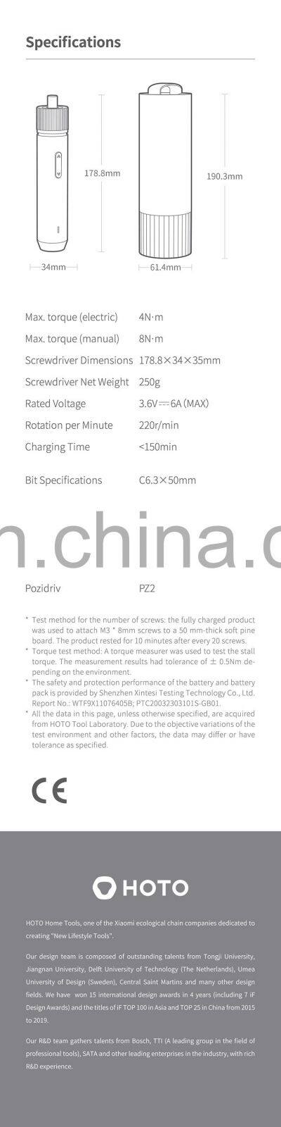 Xiaomi HOTO 1500mAh Straight Handle LED Electric Screwdriver 3 Speed Torque Rechargeable Type C Daily Screwdriver Kit Portable