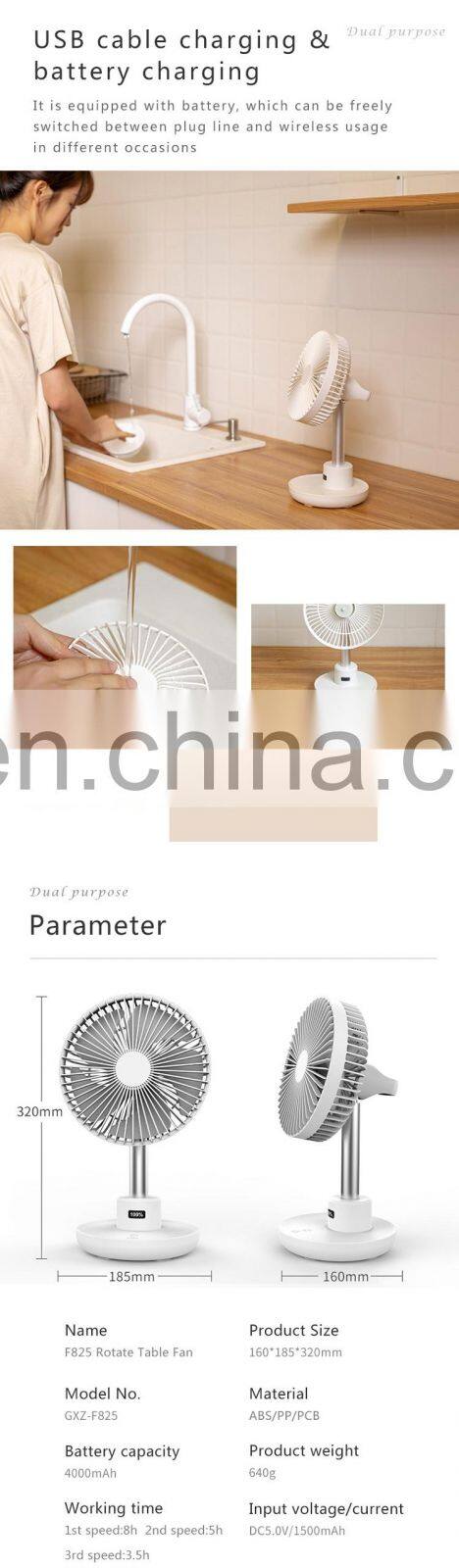 Best wholesale 2021 desktop fan 4000mAh Battery small auto oscillating table fan portable rechargeable air cooling mini fan
