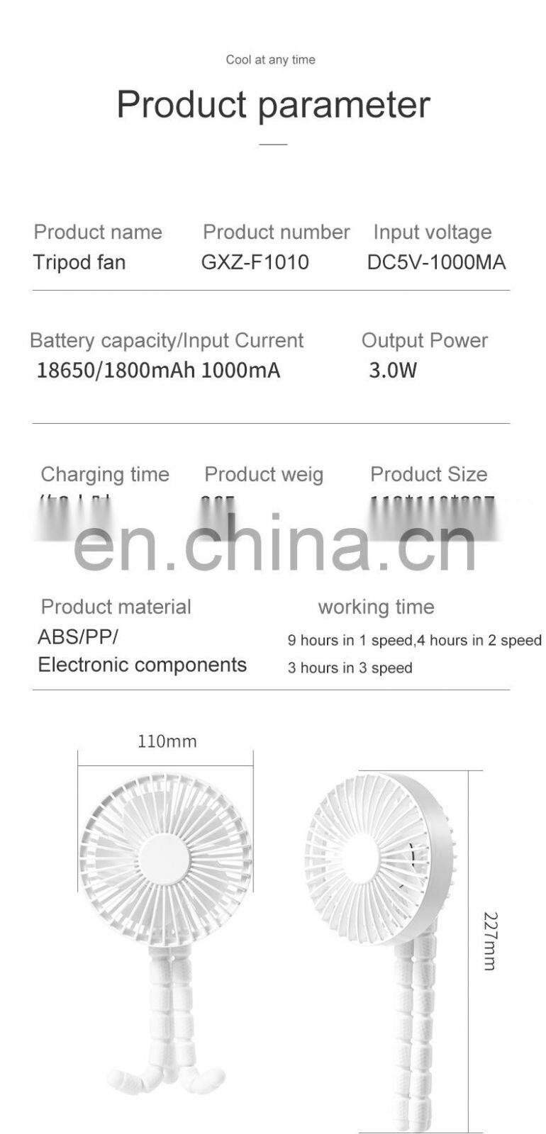 GXZ-F1010 OEM/ODM 2021 New Arrival Wireless Rechargeable 1800 MAh Battery USB Clip Mini Tripod Fan For Baby Stroller For Class