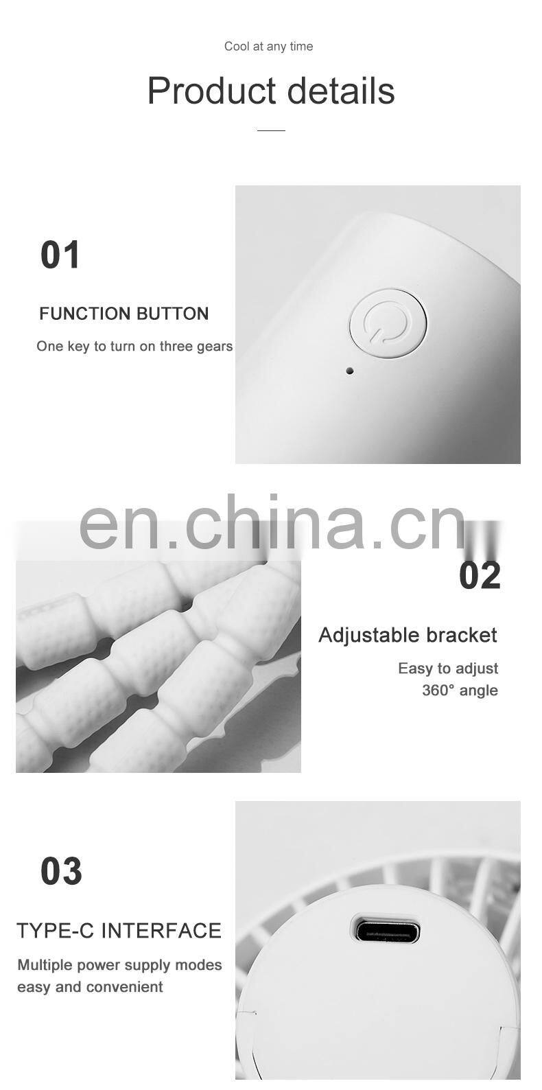 Amazon Hot Selling Flexible Adjustment 360 Degree Rechargeable Clip and Desktop Mini Fan With Inner Battery 1200 MAh