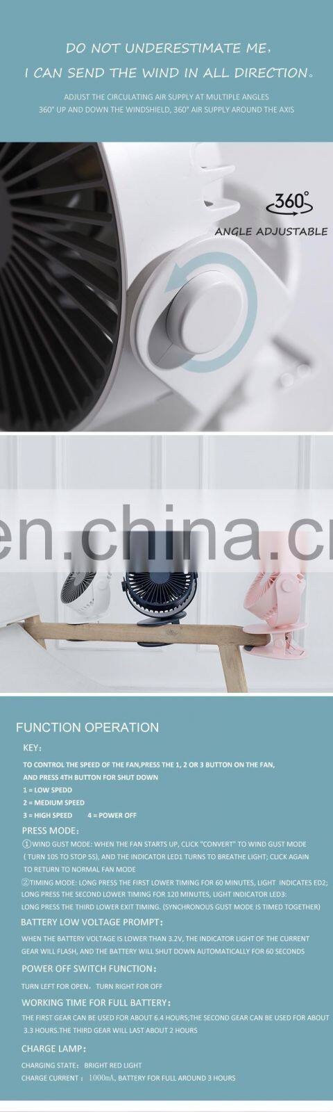 Hot Sales Desktop Portable Usb Rechargeable Clip Fan With 2000mah Battery for Home Outdoor