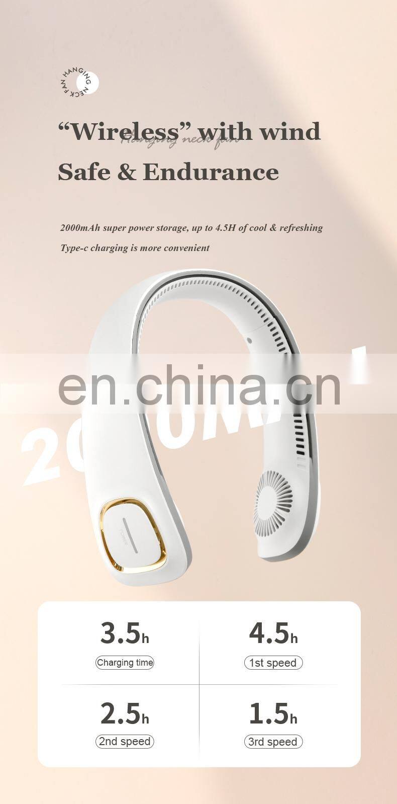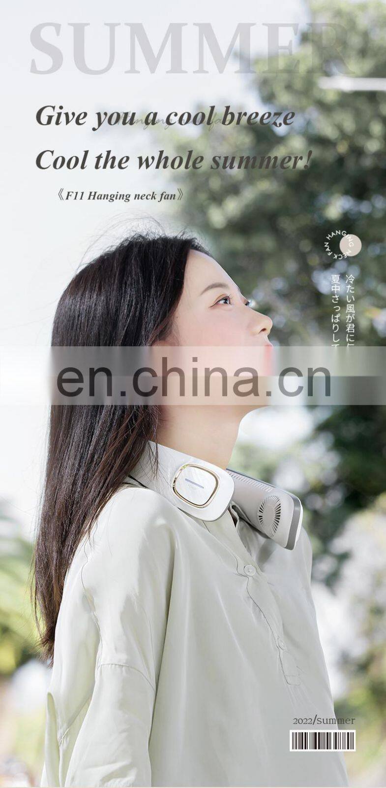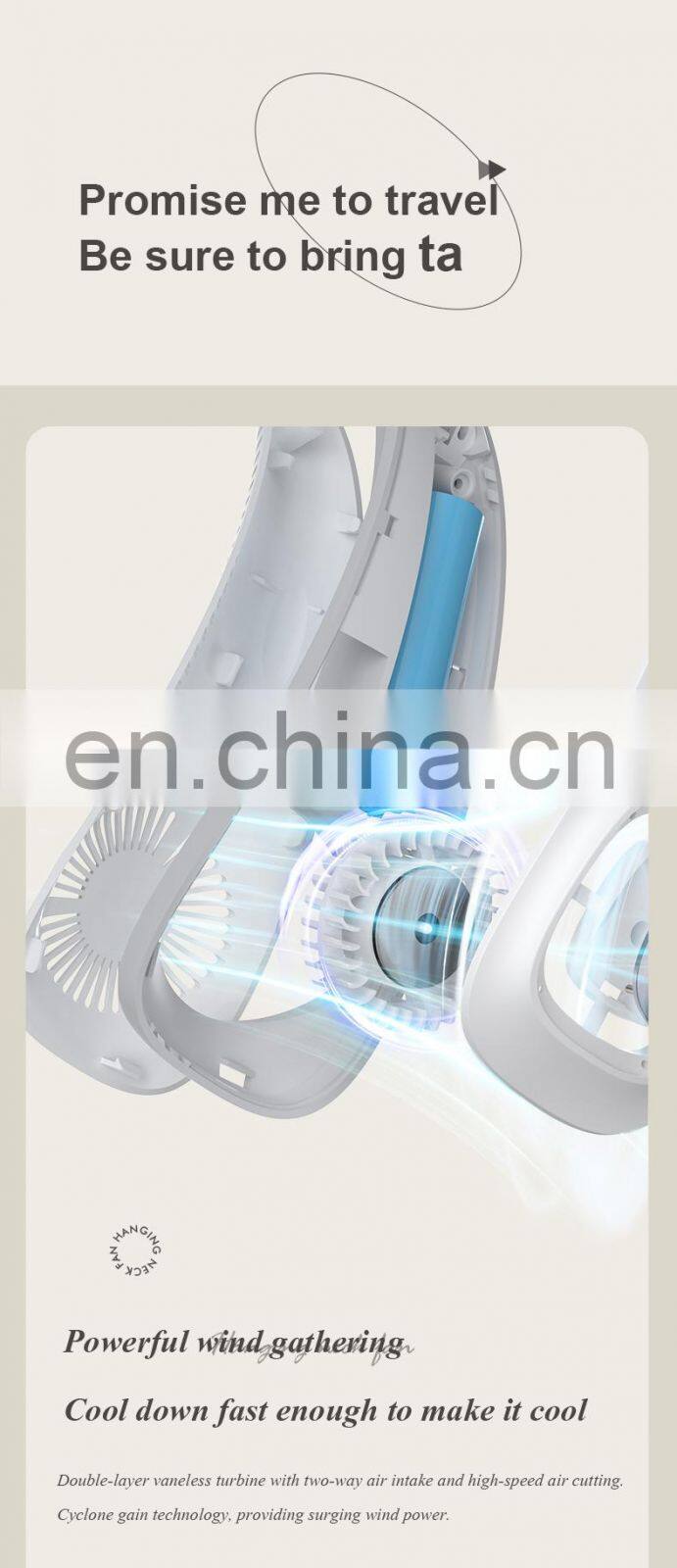 2022 Hanging Neck Fan Portable Outdoor Sports Wearable Fan Usb Rechargeable Mini Leafless Neck Cooler