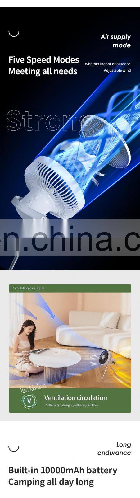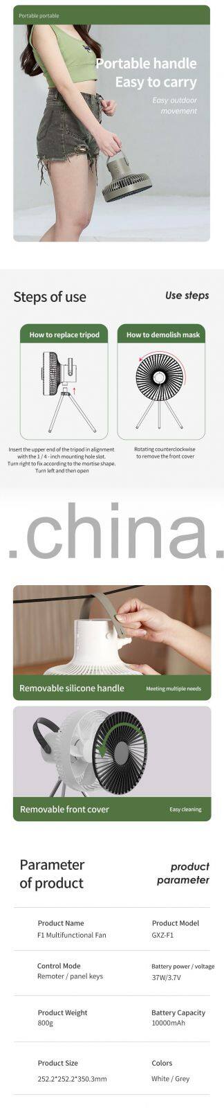 2022 New Arrival Home Tent School Outdoor 10000 Battery Mini Tripod Fan Rechargeable Stand Ceiling Camping Fan