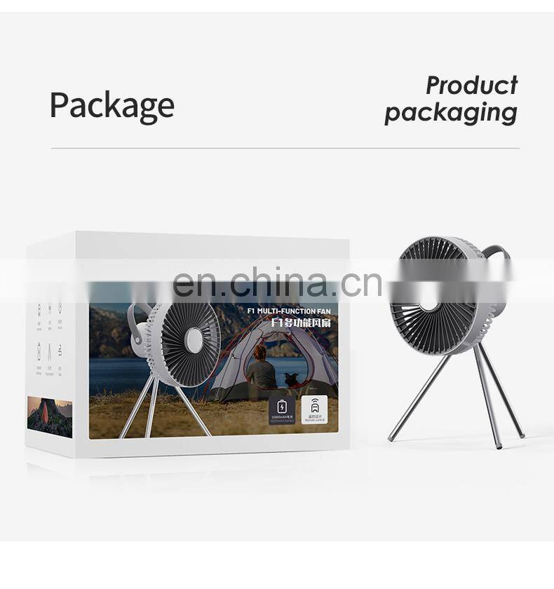 2022 New Deign Fashion Style REMOTE Control 10000mah Capacity Play Outside With Light Black Rechargeable Camping Tripod Fan