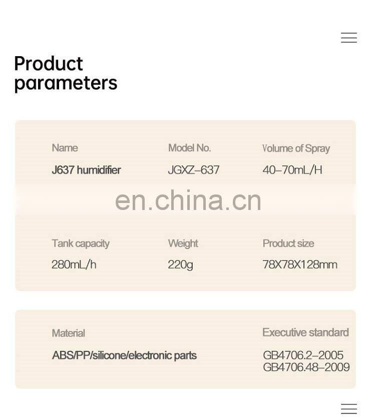 2021 Portable USB Cool Mist Humidifier Personal Spray Moisturizing Ultrasonic Mini Air Humidifier With 7 Colorful Lights