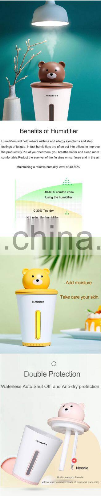 Portable Cute Bear Mini humidifier Usb Purify Air Cooler Mist Ultrasonic Humidifier for Car Office Bedroom