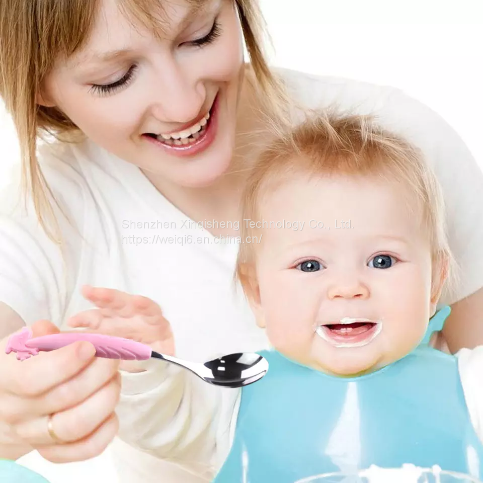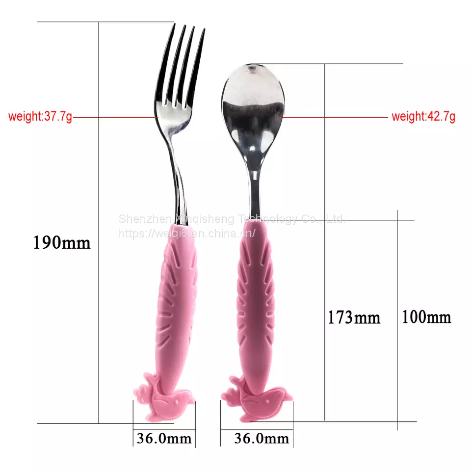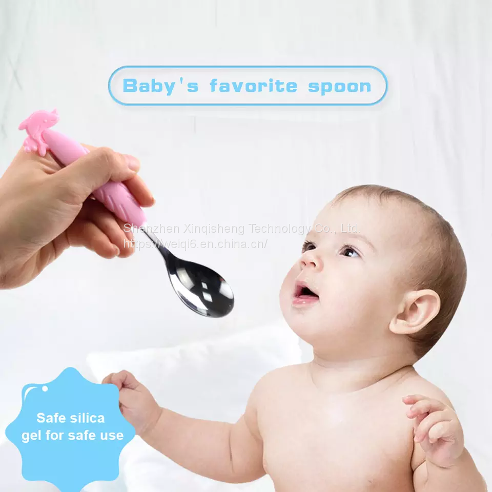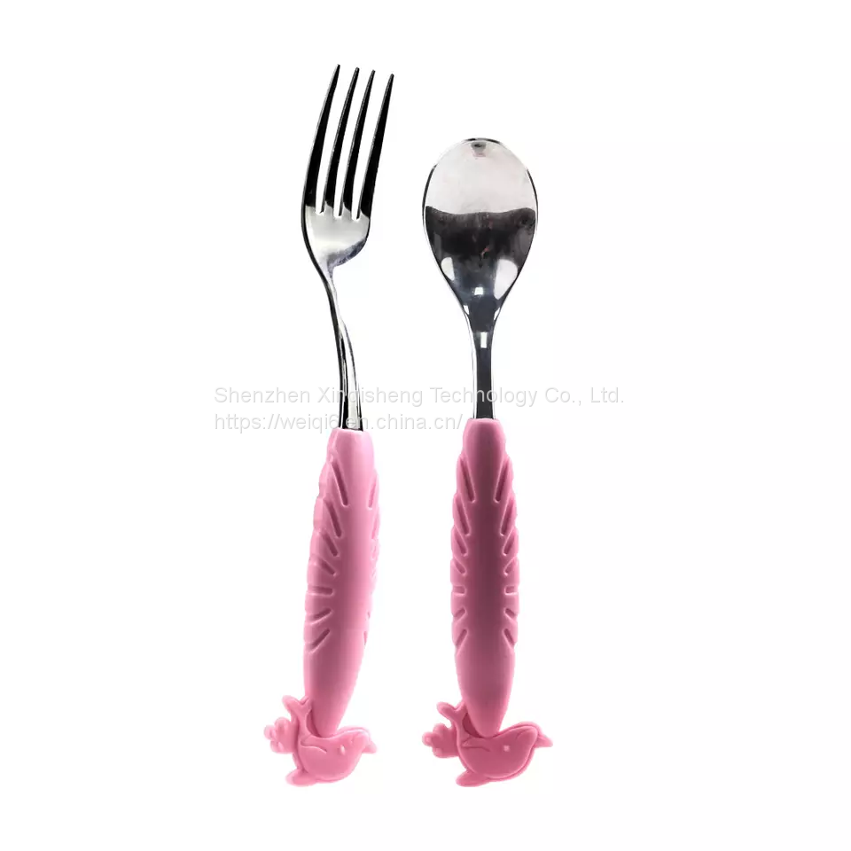 Baby food stainless steel tableware training fork soup rice spoon silicone baby spoon fork