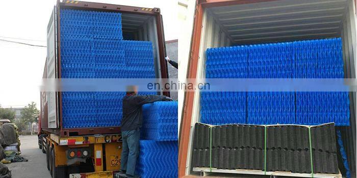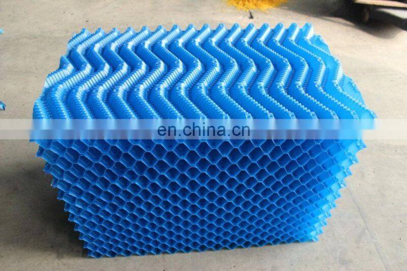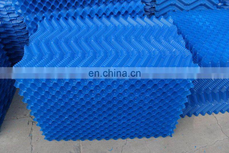 Cooling tower fill is a very important component for water and gas exchanging in cooling towers. It is located in the middle or bottom of the cooling tower. Some cooling towers would be full of the fill media, some would have half and half of the fill media, and some large cooling towers would be installed 1 layer of the fill media in the bottom.
