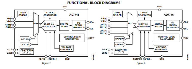 The AD7745/AD7746 has a 2-wire, i2c compatible serial interface. Both components can operate on a single power supply from 2.7 V to 5.25 V. They can be specified within the vehicle temperature range of - 40 ° C to+125 ° C and installed in a 16 lead TSSOP package.