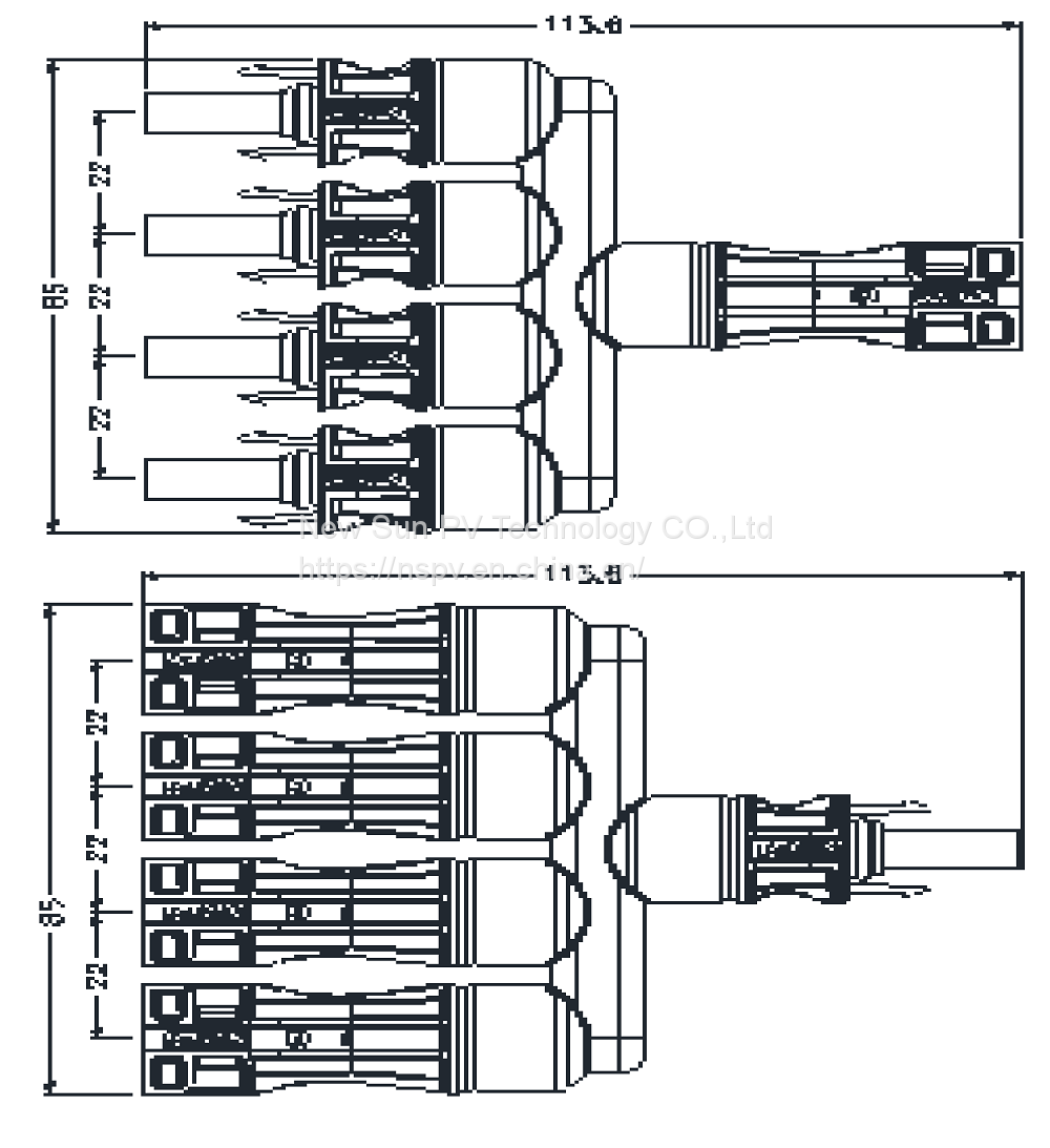 Solar Connector Y Branch PV Cable Connector 3To1 Y Branch Connector