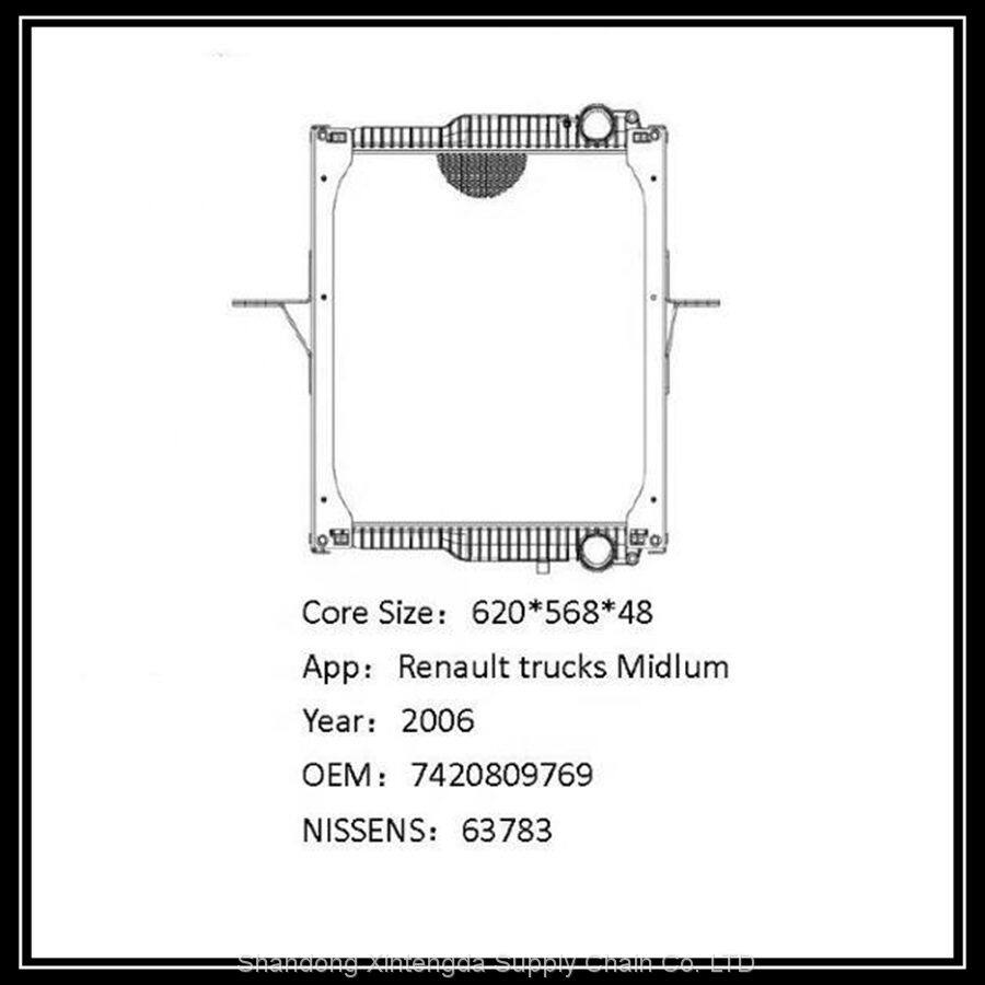 OEM 5001873317 7420809769 63783 Tractor Parts Aluminum Truck Radiator for Re-Nault Midlum Truck