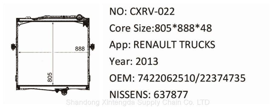 OEM 7422062510 7423292918 22374735 637877 5001859137 Quality Warranty Aluminum Truck Radiator for Re-Nault 2013-