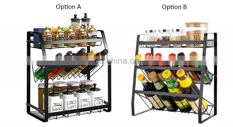Spice Rack 3-Tier Kitchen Countertop Standing Storage Organizer Hanging Racks Seasoning Organizer