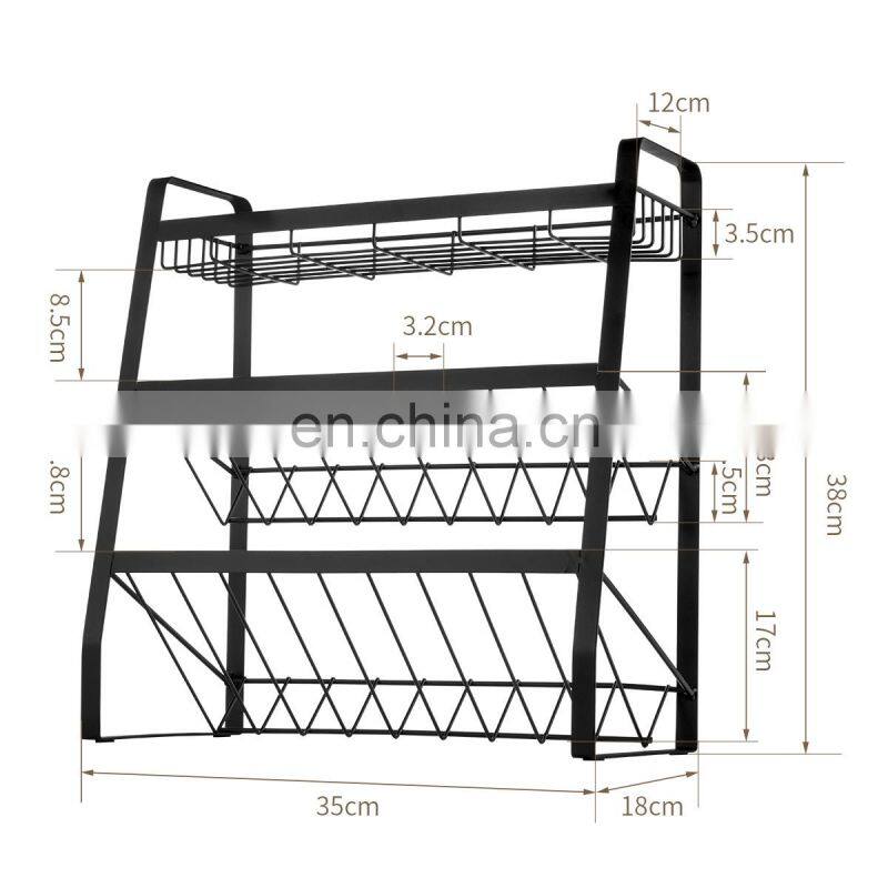 Punch-free Multifunctional Kitchen Spice Racks 3 Tier Over the Door Storage Shelf Hanging Cabinet Metal Pantry Rack Organizer