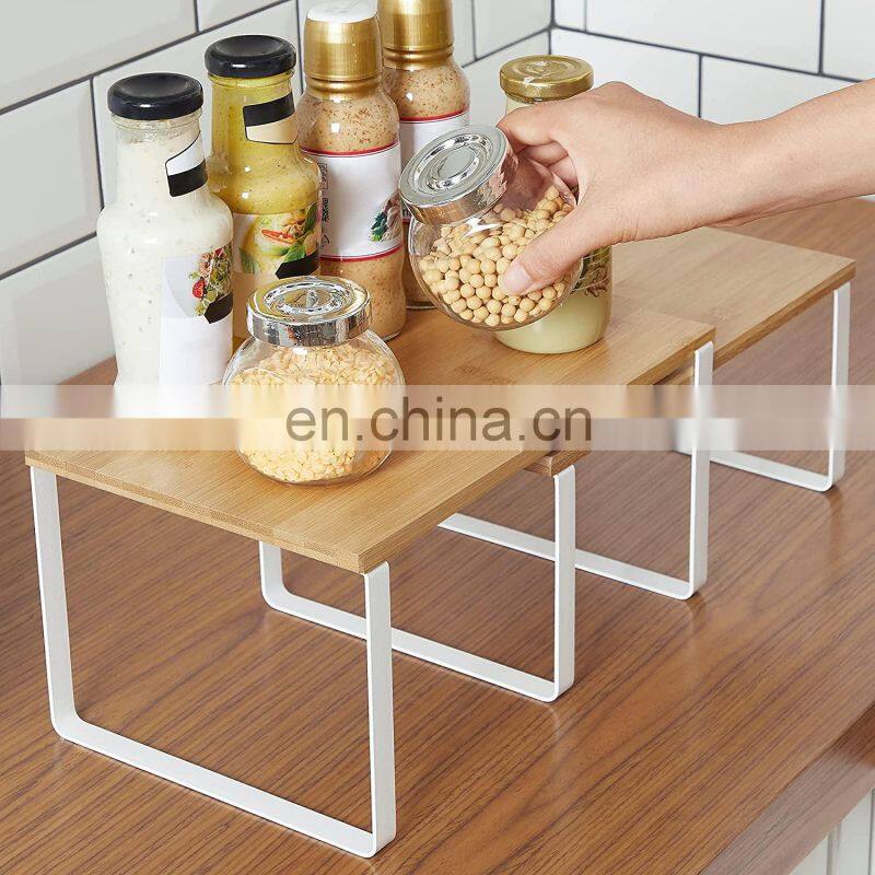 Home > Products > Kitchen Storage > Cabinet Shelf Organizers, Set of 2 Kitchen Counter Shelves, Stackable, Expandable, Metal and Bamboo